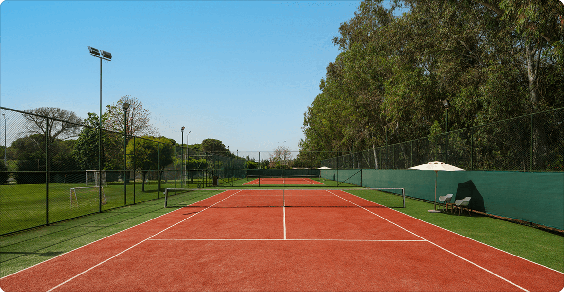 The tennis courts within our hotel are ready for our valued guests to have a fun holiday. Our courts are located close to wooded areas and the blue waters of the Mediterranean Sea.