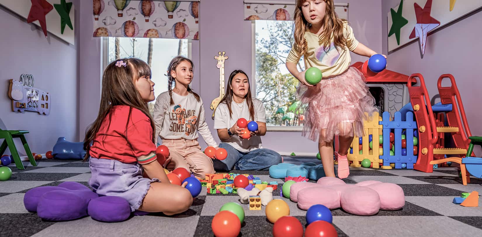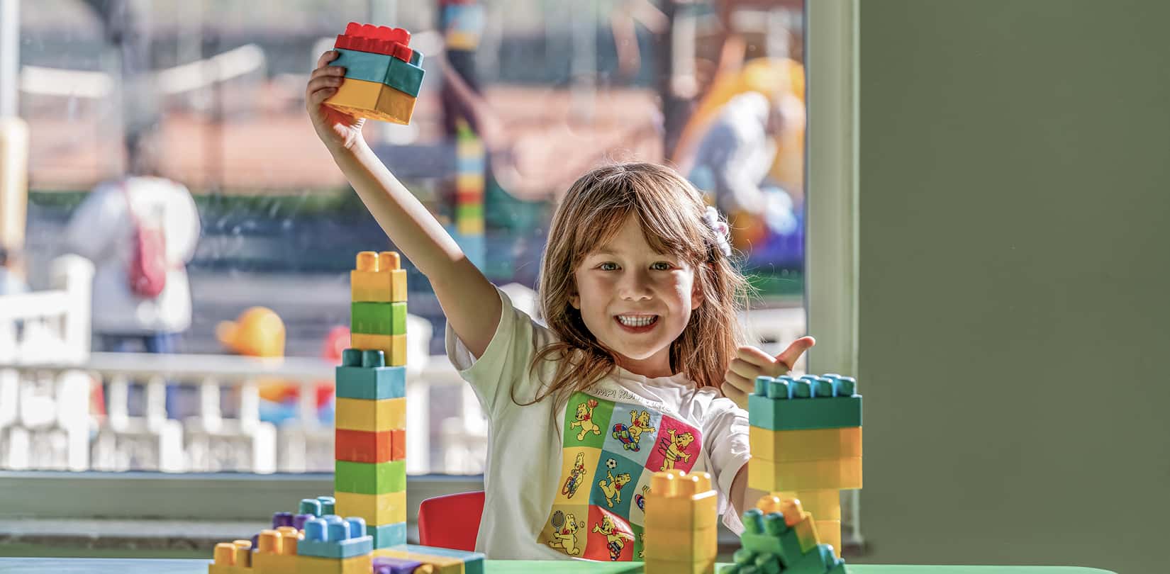 A world filled with color, energy and engaging activities. Games, creative sessions and lively gatherings throughout the day create a fun and exploratory experience for children.